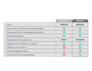 Our flagship product, the modsaw, is everything you need to build your own carbon and aluminum arrows. Our modular arrow saw, designed and built in Colorado, comes in two models: the standard and the deluxe.